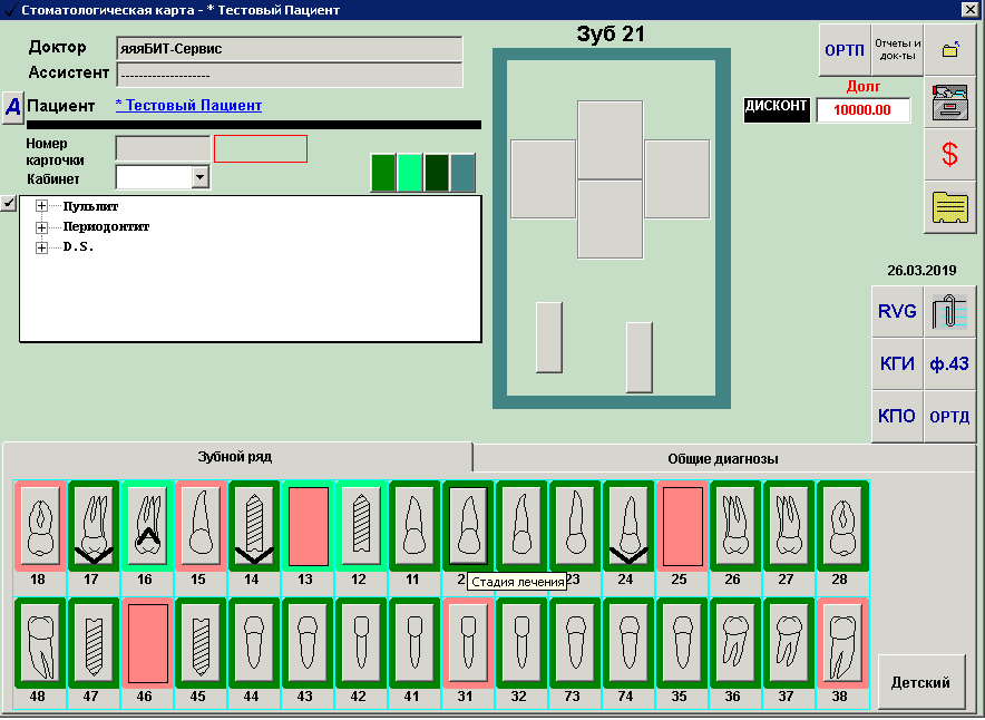- Создание электронной истории болезни с зубной формулой