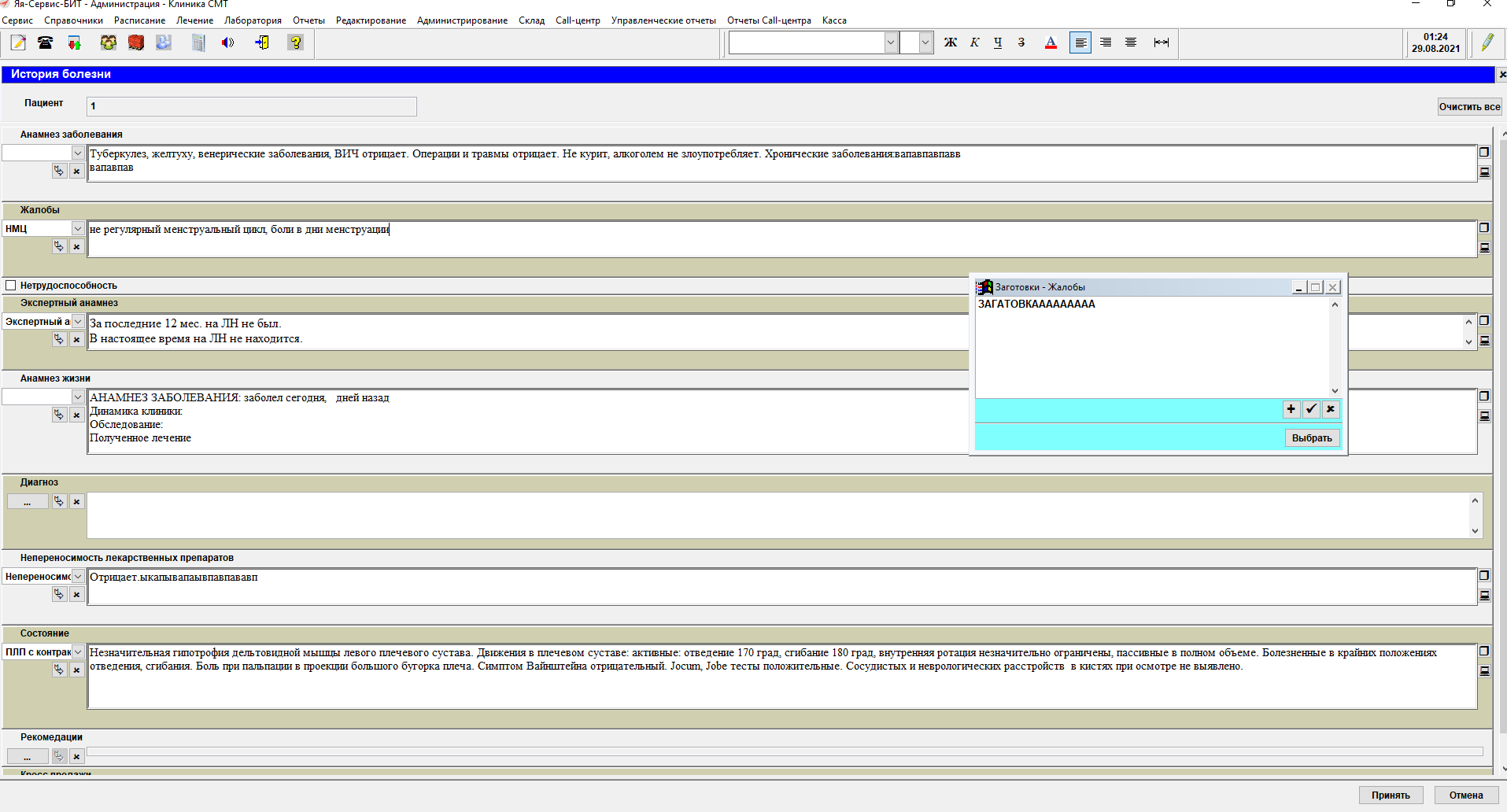 Программа для медицинского центра