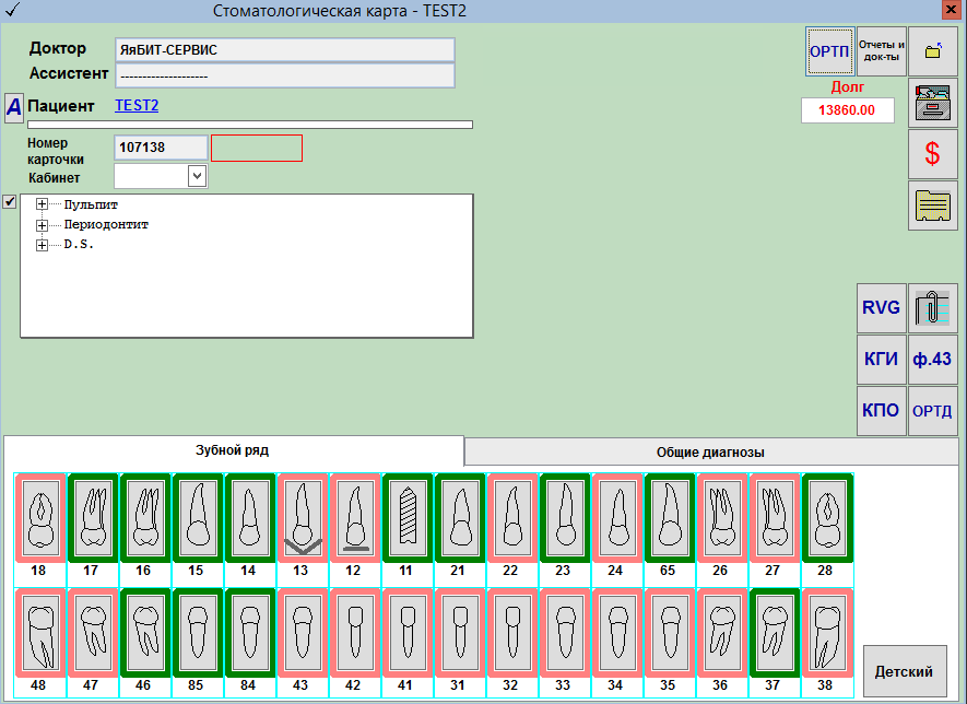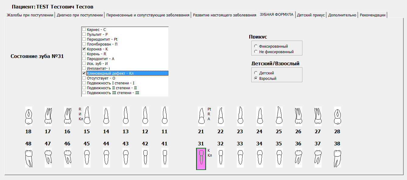 - Печать стоматологической карты 043/у