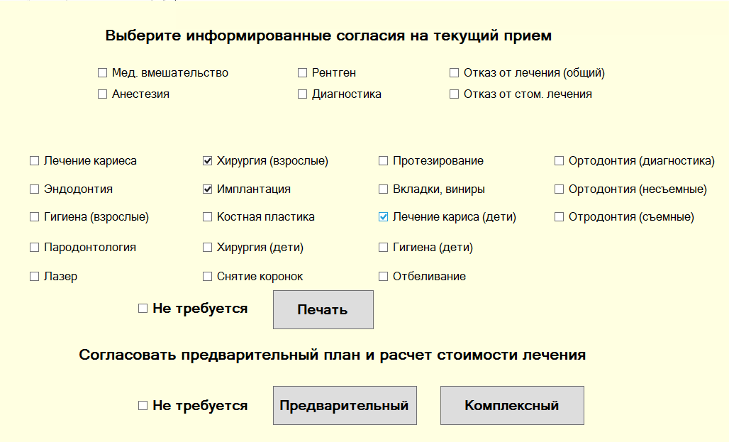- Печать информированных согласий