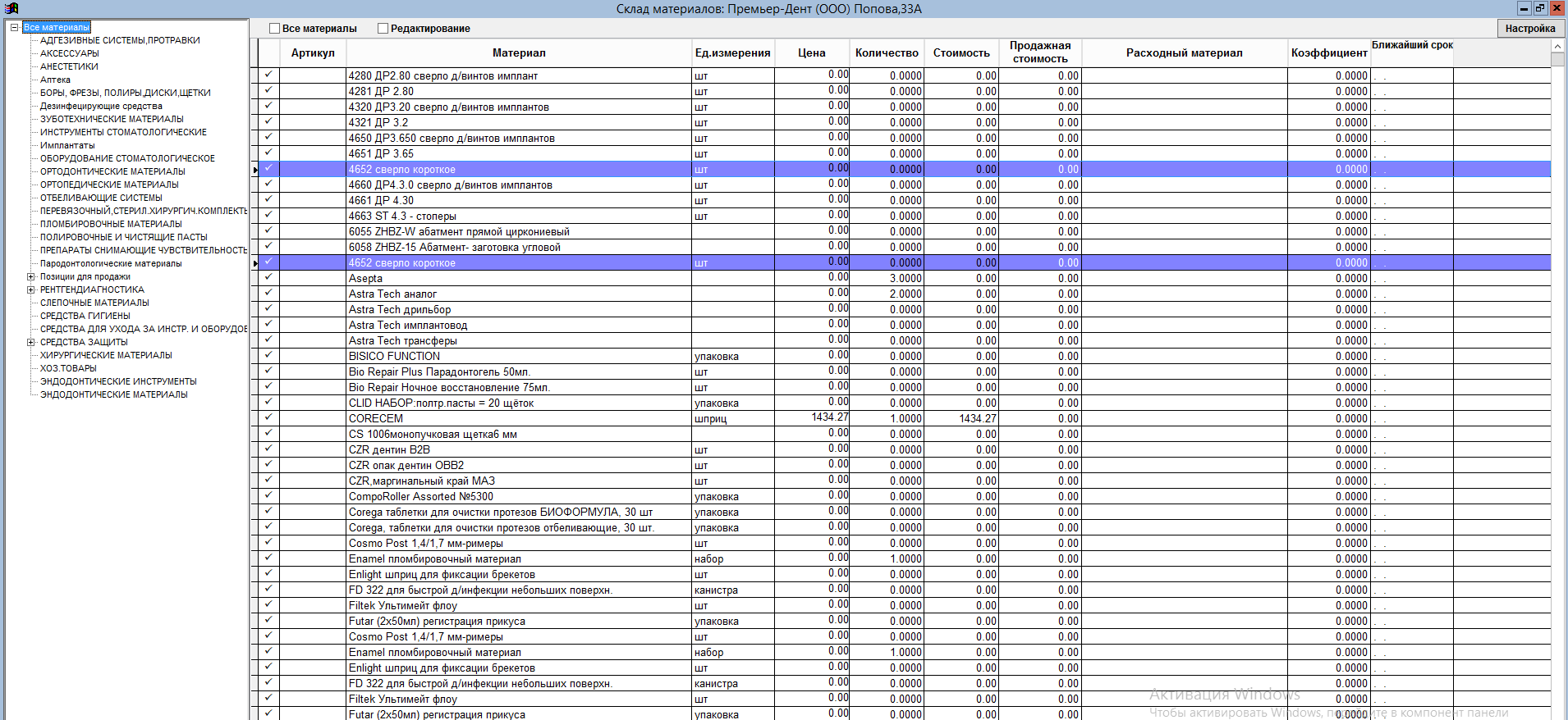 Учет материалов