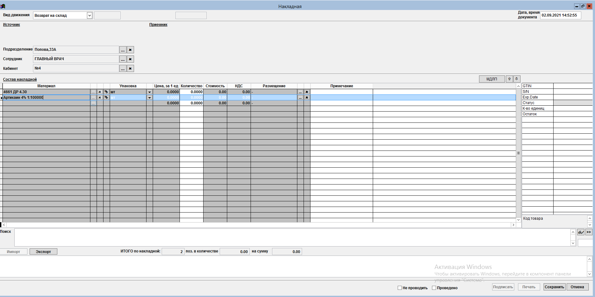 - Заявки материалов из кабинетов/операционных