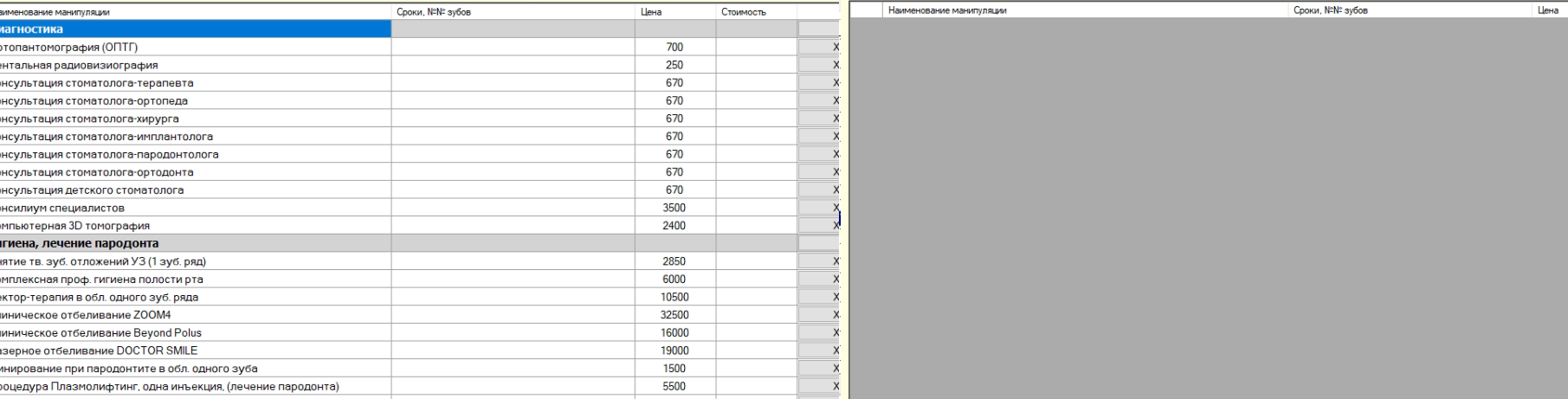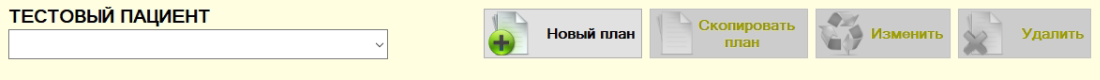 Удалить выбранный план лечения (становится активной, когда план выбран)Среднее поле серого цвета представляет собой рабочее поле плана. Оно подгружает шаблон из справочника плана.
