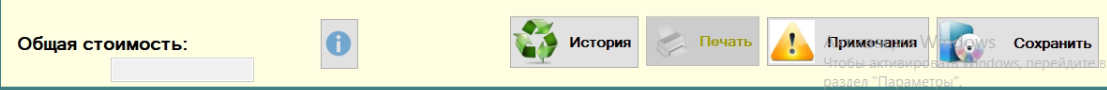 Нижняя часть панели управления показывает общую стоимость работ и содержит ряд других функциональных кнопок
