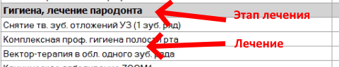 3. Щелкая ЛКМ на позиции лечения, под заголовками названия этапа лечения, выбираете либо зубы из зубной формулы, либо количество манипуляций