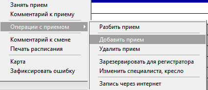 Добавление приема производится для того, чтобы добавить дополнительный прием к уже существующим, но не входящим в стандартное расписание.