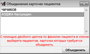 4. Убедиться, что в списке находятся нужные пациенты и нажать «Объединить»