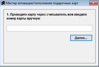 Далее нажимаем "Подарочная карта". При использовании считывателя карт, проведите картой по нему, а иначе введите номер сертификата вручную (важное требование: сертификат должен иметь номер. Его можно либо придумать самому (и написать на сертификате), либо сертификаты уже номерные. По номеру производится идентификация сертификата)