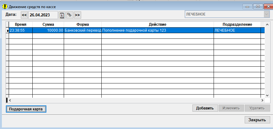 По завершении операции окно "Движение средств по кассе" будет выглядеть так"