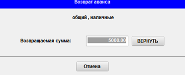 После чего, выбрать возвращаемый аванс и нажат кнопку «Вернуть»