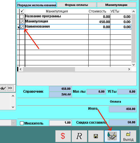 » программа предложит оформить оплату – откроется окно расчетов с пациентом.